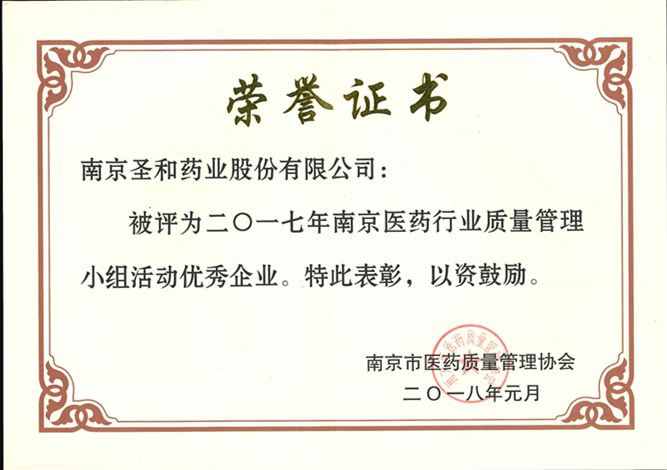 南京醫(yī)藥行業(yè)質(zhì)量管理小組活動優(yōu)秀企業(yè)